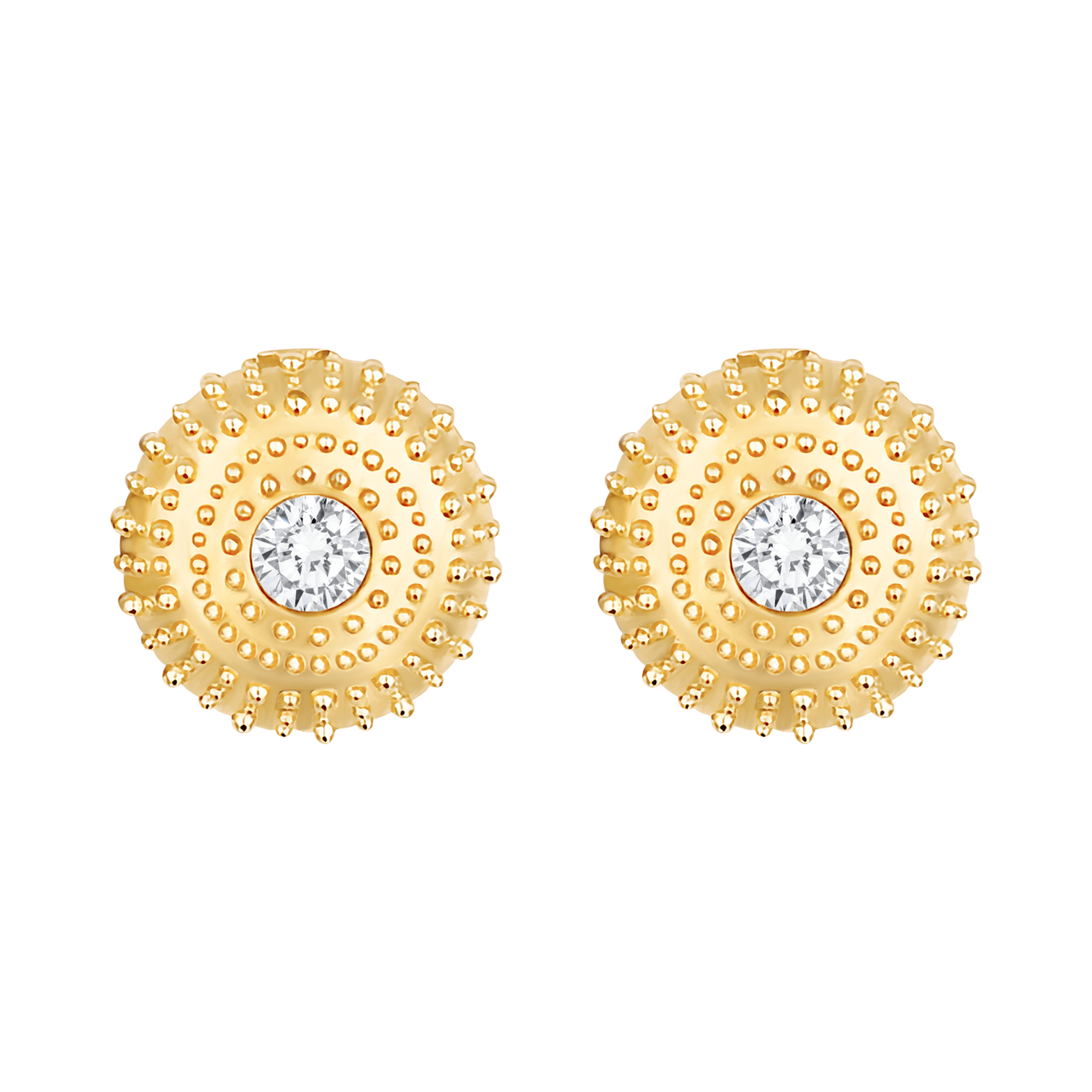 Dive into the depths of untamed beauty with our Sea Urchin Earrings—bold, radiant, and irresistibly striking. Handcrafted in lustrous gold-plated stainless steel and encrusted with high-shine zirconias, each pair channels the hypnotic charm of ocean life through daring design and fearless detail.